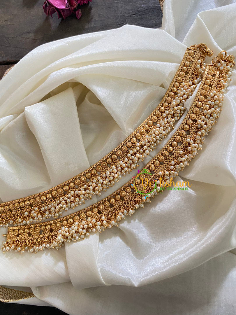 Gold Look Alike Bridal Anklets-Cluster Pearl layered -Round shaped pattern NO STONE anklets -layered broad anklets.