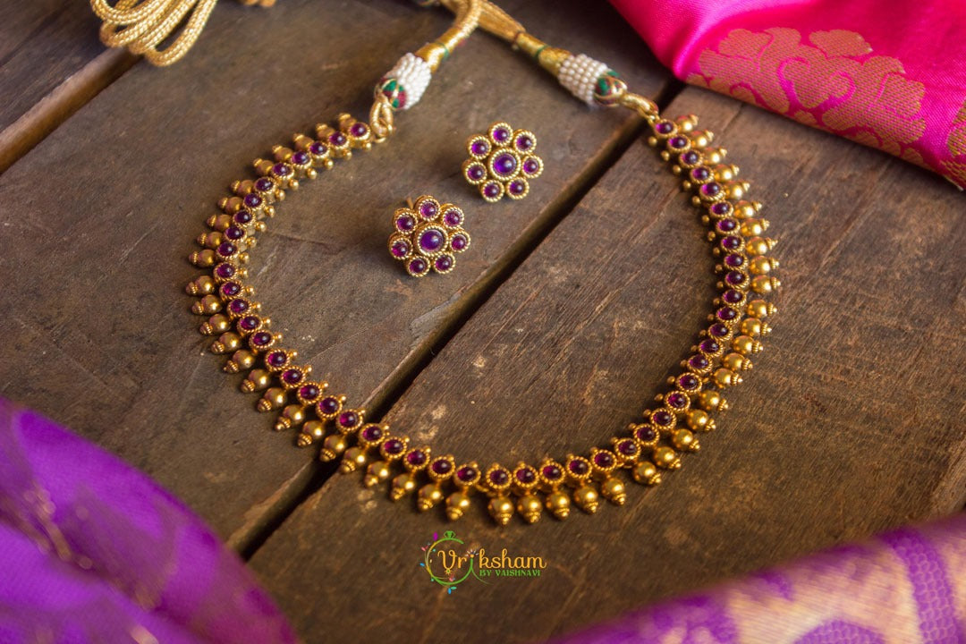 MAKE MATERIAL – This beautiful Gold look alike simple choker - Purple is made of copper and brass and Kemp stones.