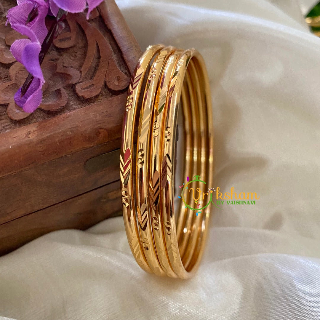 Gold Look Alike Daily Wear Bangles-V cut – imitation daily wear bangles, comes as 4 pieces only. Traditional thin daily wear bangles.