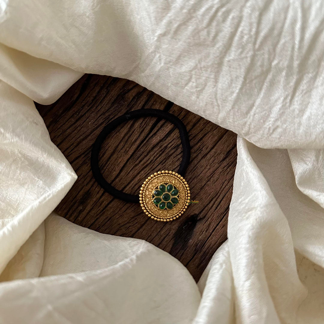 Elevate your festive look with our Gold Look Alike Festive Rubber Band in Flower shape. The vibrant Green colors will add a touch of elegance to your outfit. Made from high-quality materials, it's both stylish and durable. Perfect for any occasion.
