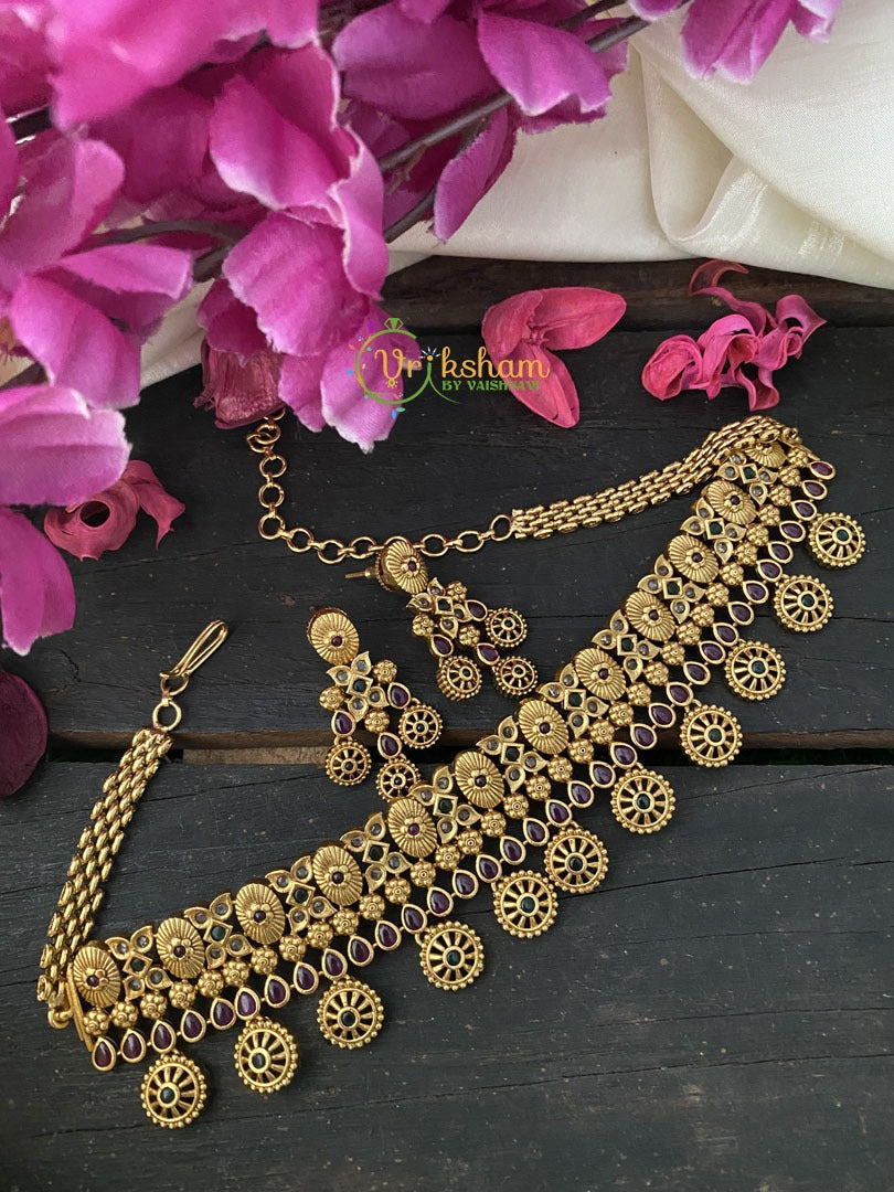 For more such neckpieces please visit, https://vrikshamindia.com/product-category/golden-jewellery/high-neck-choker/