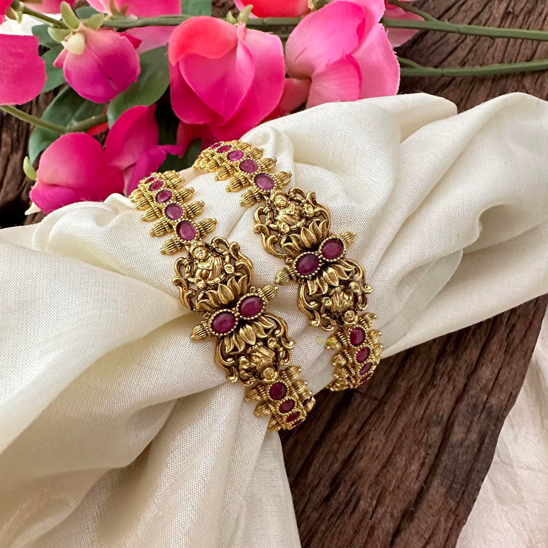 Gold Look Alike Lakshmi Bangle-Red-G13421