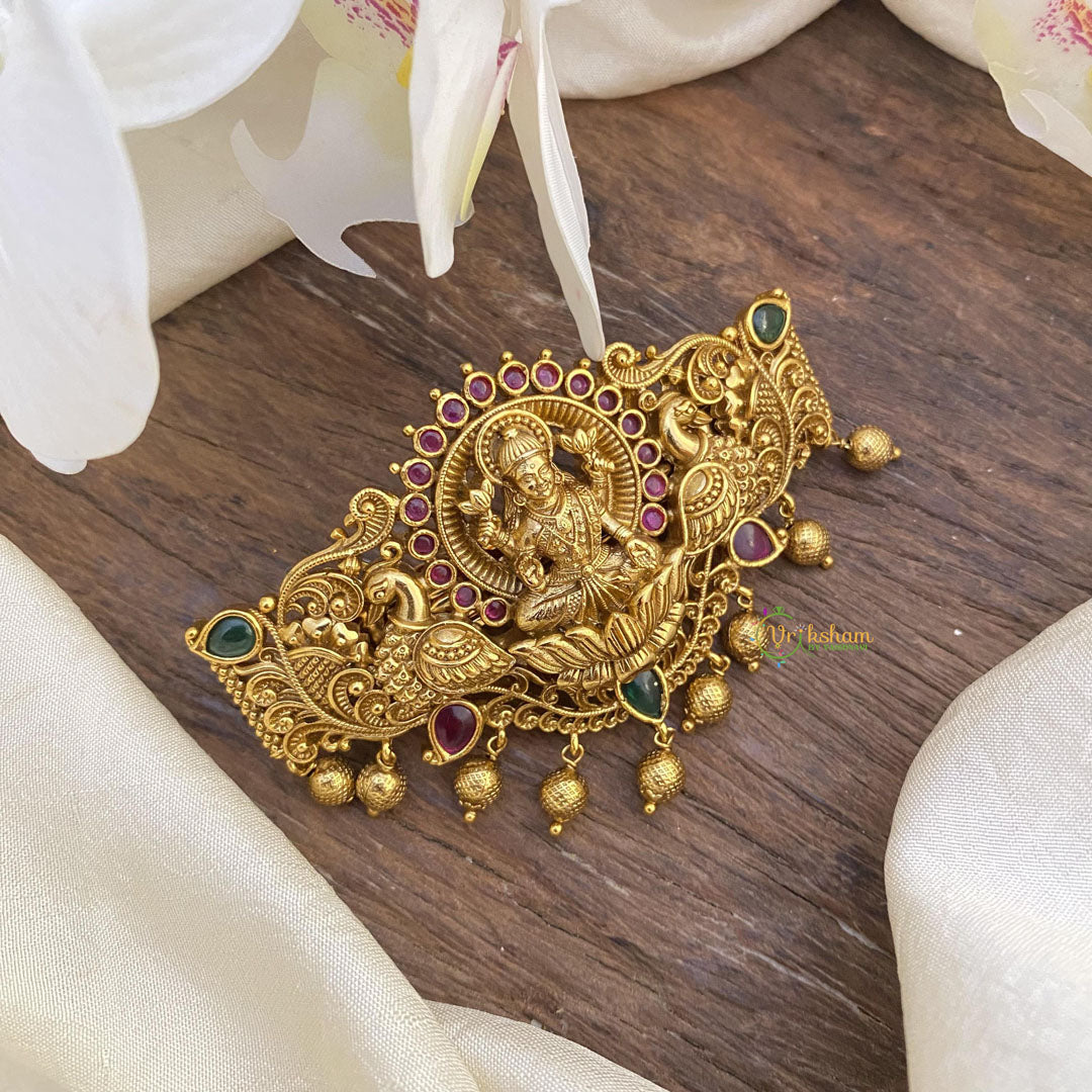 Add a touch of luxury to your hair with our Gold Look Alike Lakshmi Hair clip. Featuring a dual peacock design, this clip exudes sophistication and elegance. The golden pearl accents add a subtle yet glamorous touch. Elevate your style with this premium accessory.