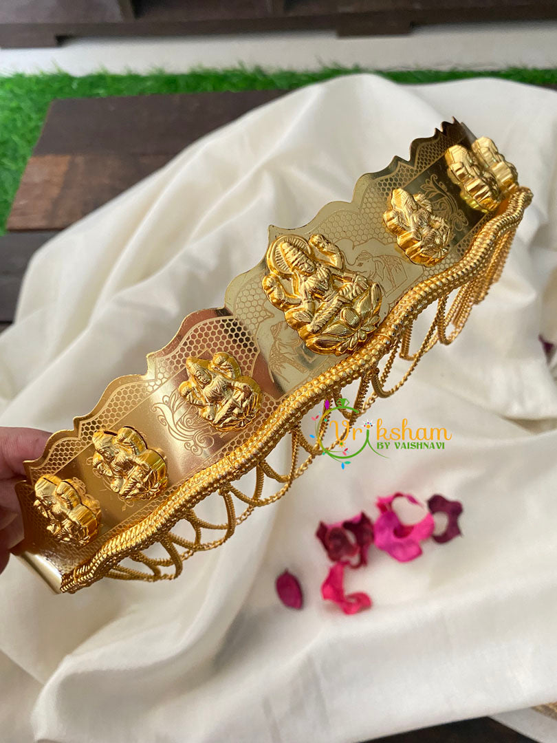 Premium Gold Look Alike Lakshmi Hipbelt -Elegant lakshmi idols studded across the hipbelt swing chain design at the bottom of the Hipbelt.