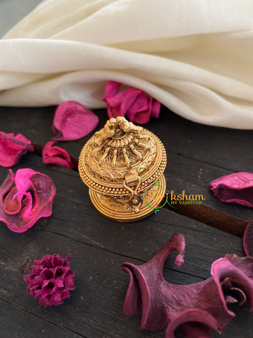 Gold Look Alike Parrot Kumkum Box-Dual Parrot - No stone studded round kumkum box.