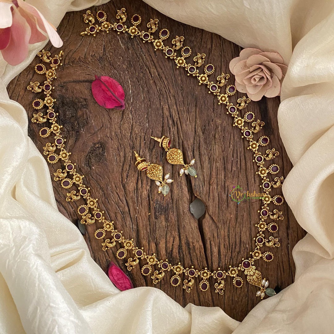 Introducing our luxurious Gold Look Alike Peacock Long Neckpiece, adorned with vibrant Rice Pearls. A true statement piece, exuding sophistication and elegance. Elevate any outfit with this stunning and exclusive accessory. Make a bold fashion statement with this exquisite peacock-inspired design.
