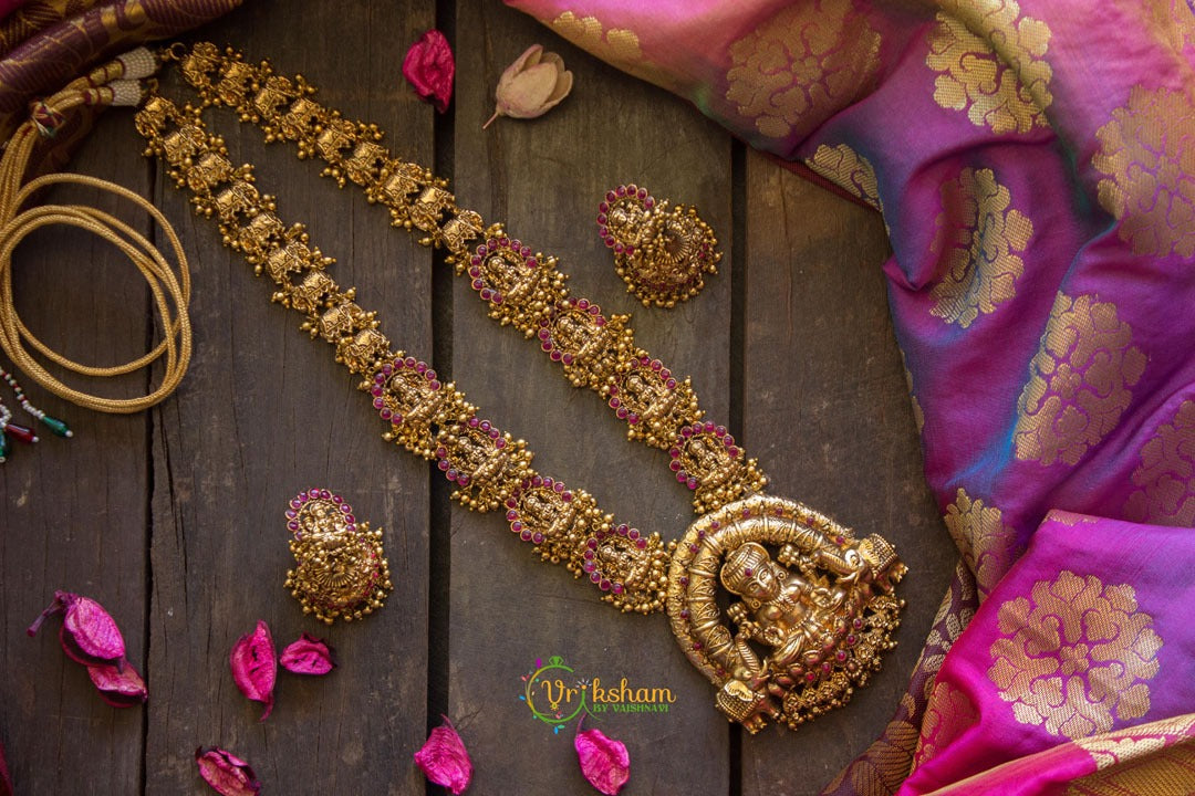 Gold Look Alike Premium Quality Lakshmi Long Neckpiece with earrings and back rope.
