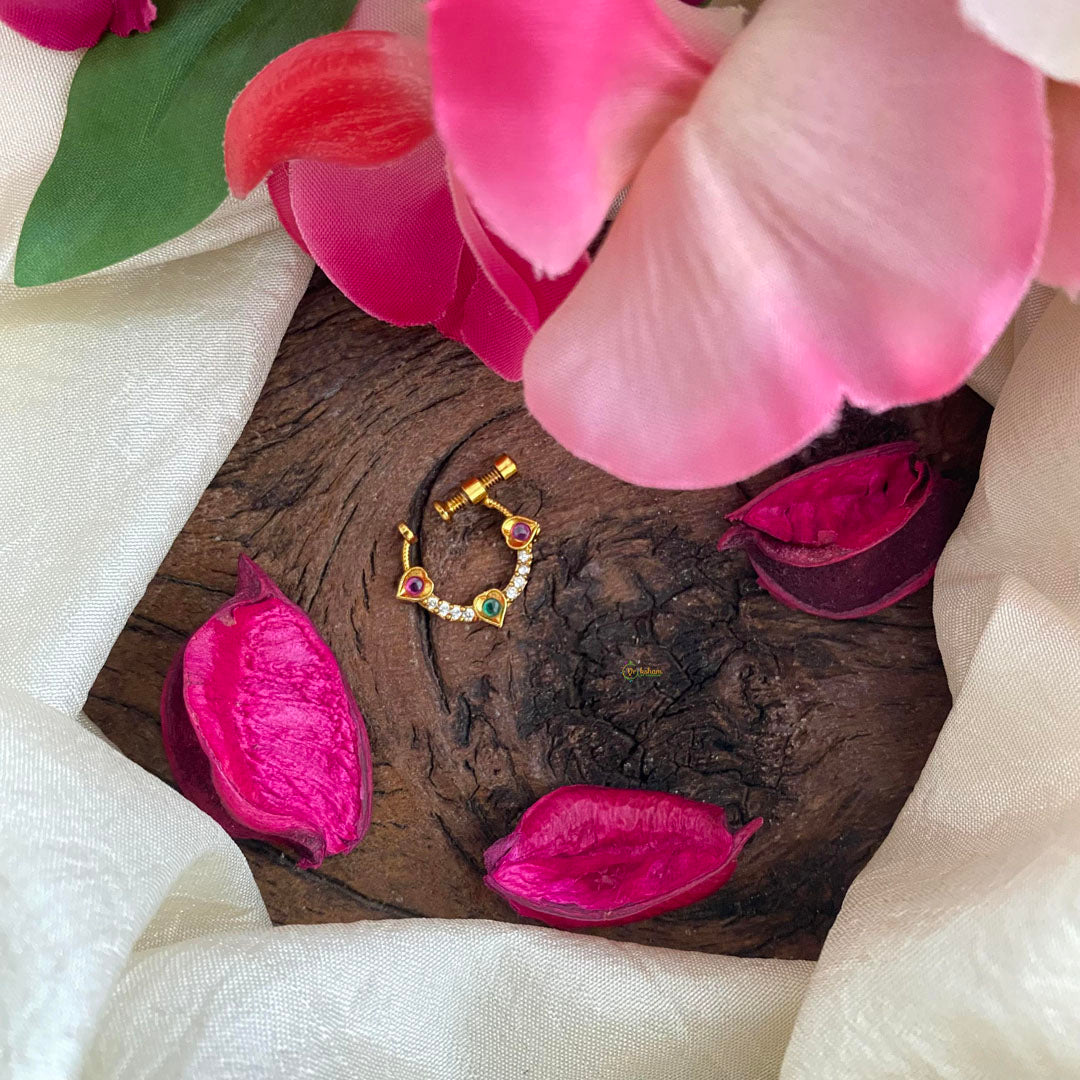 Gold Look Alike Red Green White AD Stone Nath / Nose pin-G13756