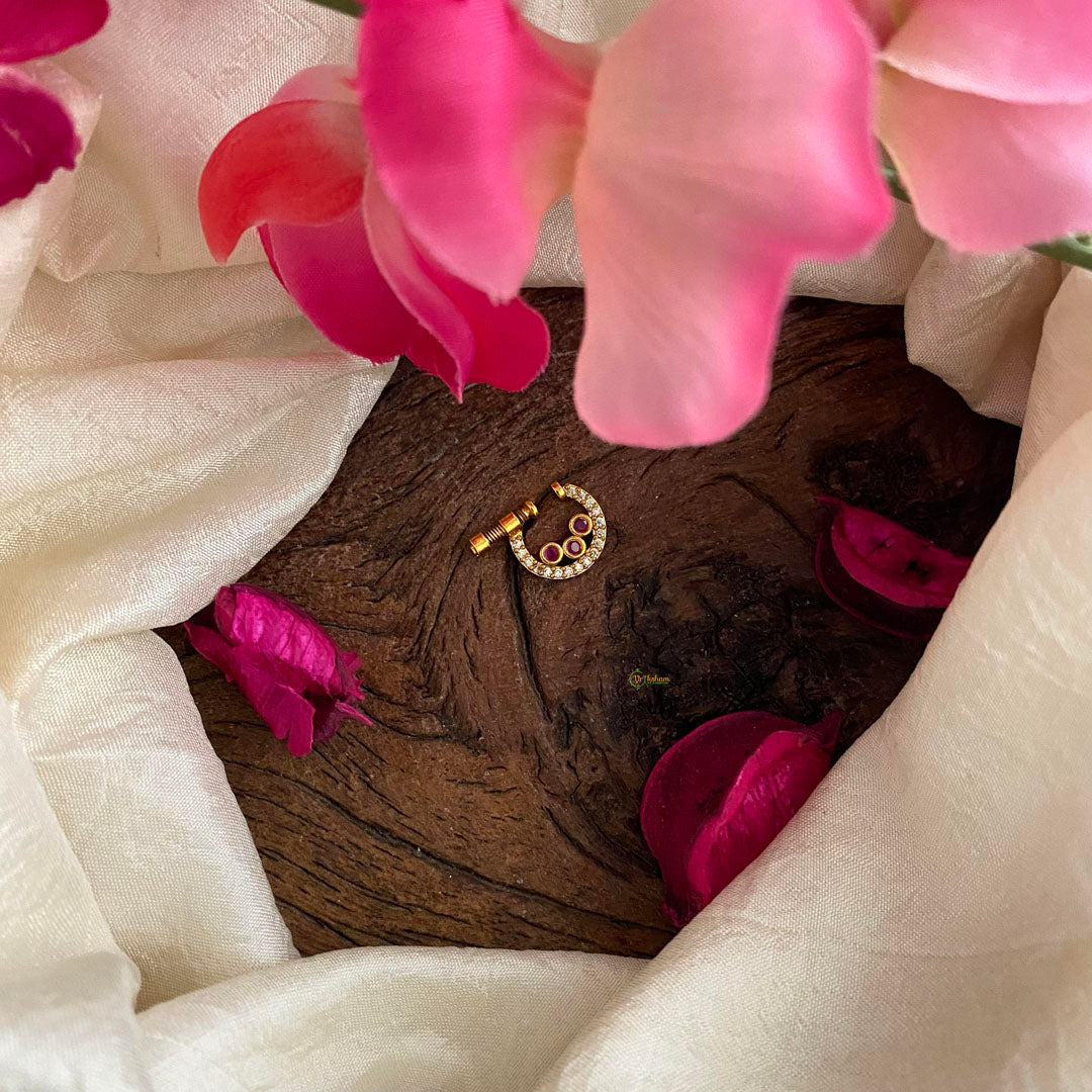 Gold Look Alike Red White AD Stone Nath / Nose pin-Round-G13753
