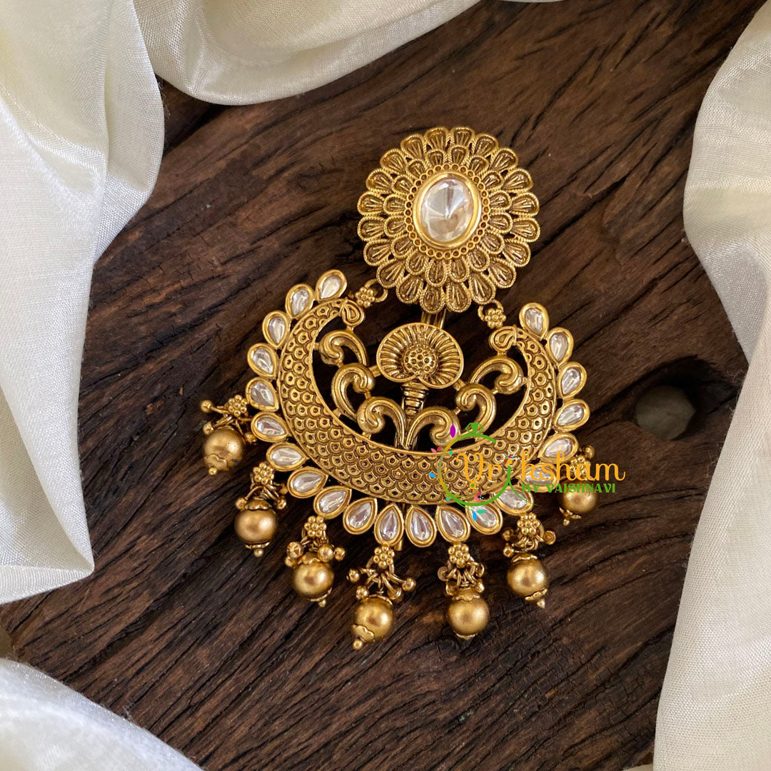 Make material: Antique Gold Look Alike Single Billai is made of Temple make, Copper and brass alloy, ad stone.