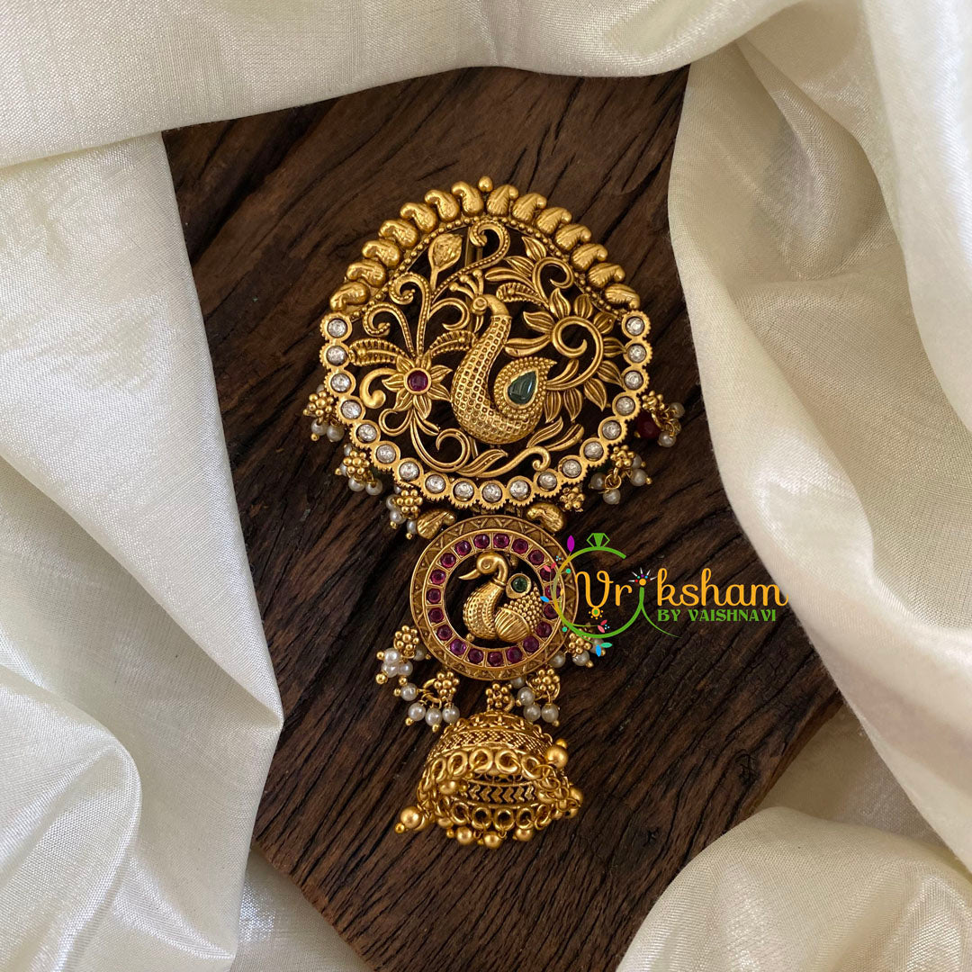 Make material: Antique Gold Look Alike Single Billai is made of Temple make, Copper and brass alloy, ad stone.