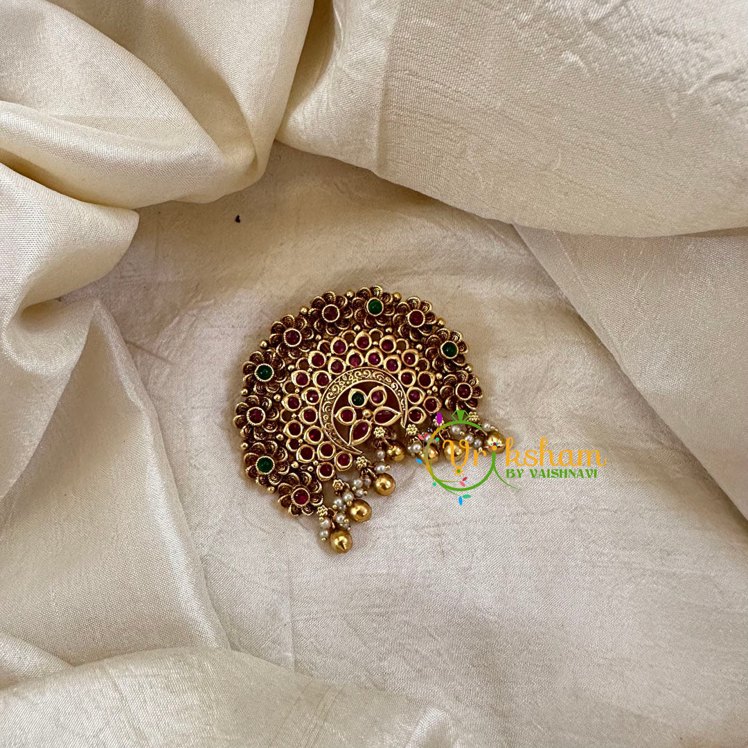 Make material: Antique Gold Look Alike Single Billai is made of Temple make, Copper and brass alloy, ad stone.