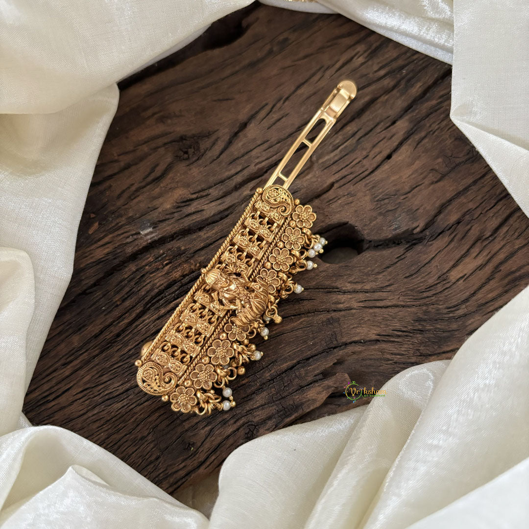 Gold Look Alike Temple Hair clip -Pearl-Lakshmi hair clip for festive braids and hairstyling.