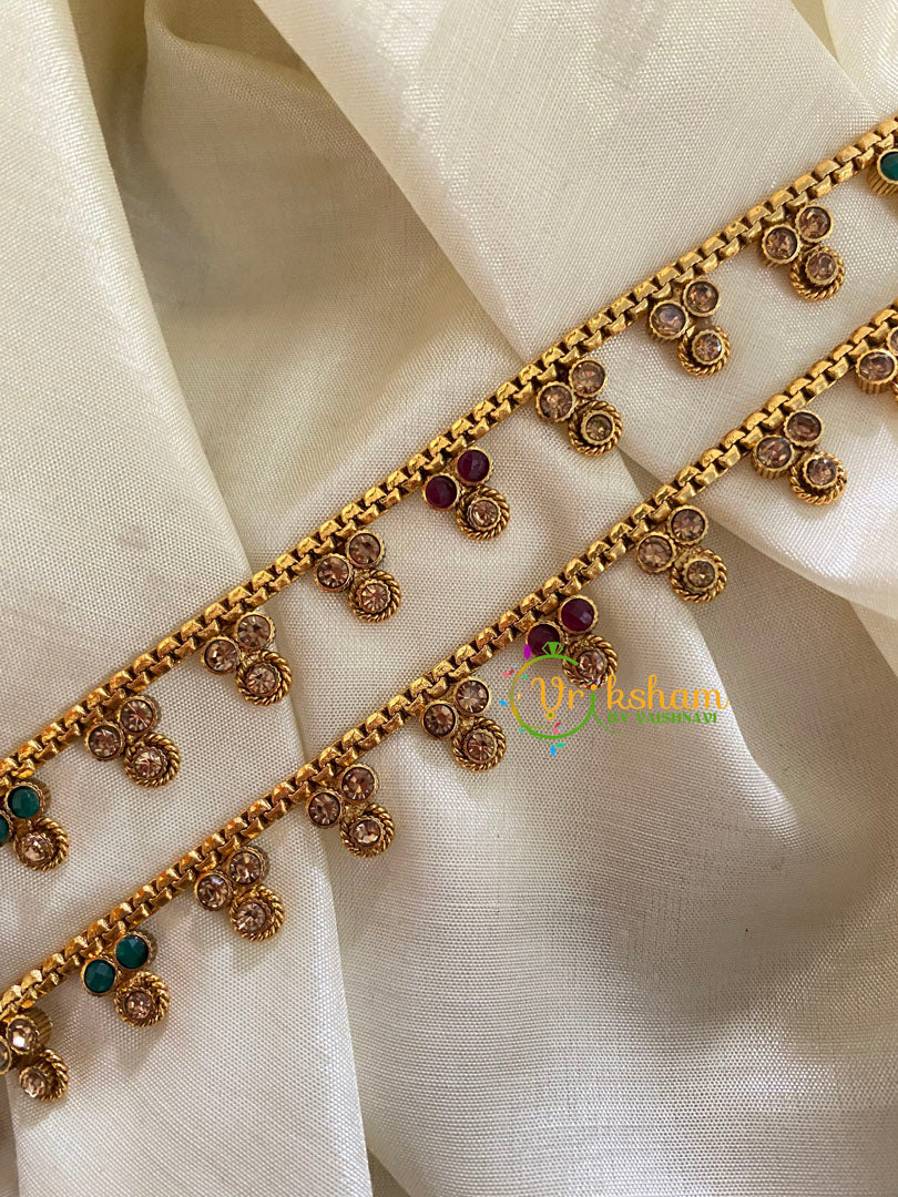 Elegant Gold Look Alike Thin Anklets- 3 Dots-Red Green White non precious stone studded anklets -single strand anklets.