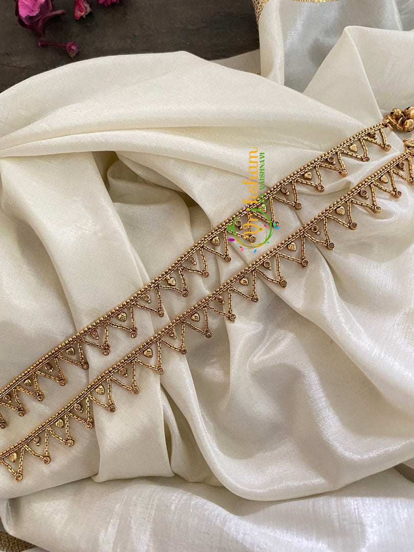 Elegant Gold Look Alike Thin Anklets- V Chain layer with Yellow Gold non precious stone studded anklets -single strand anklets.
