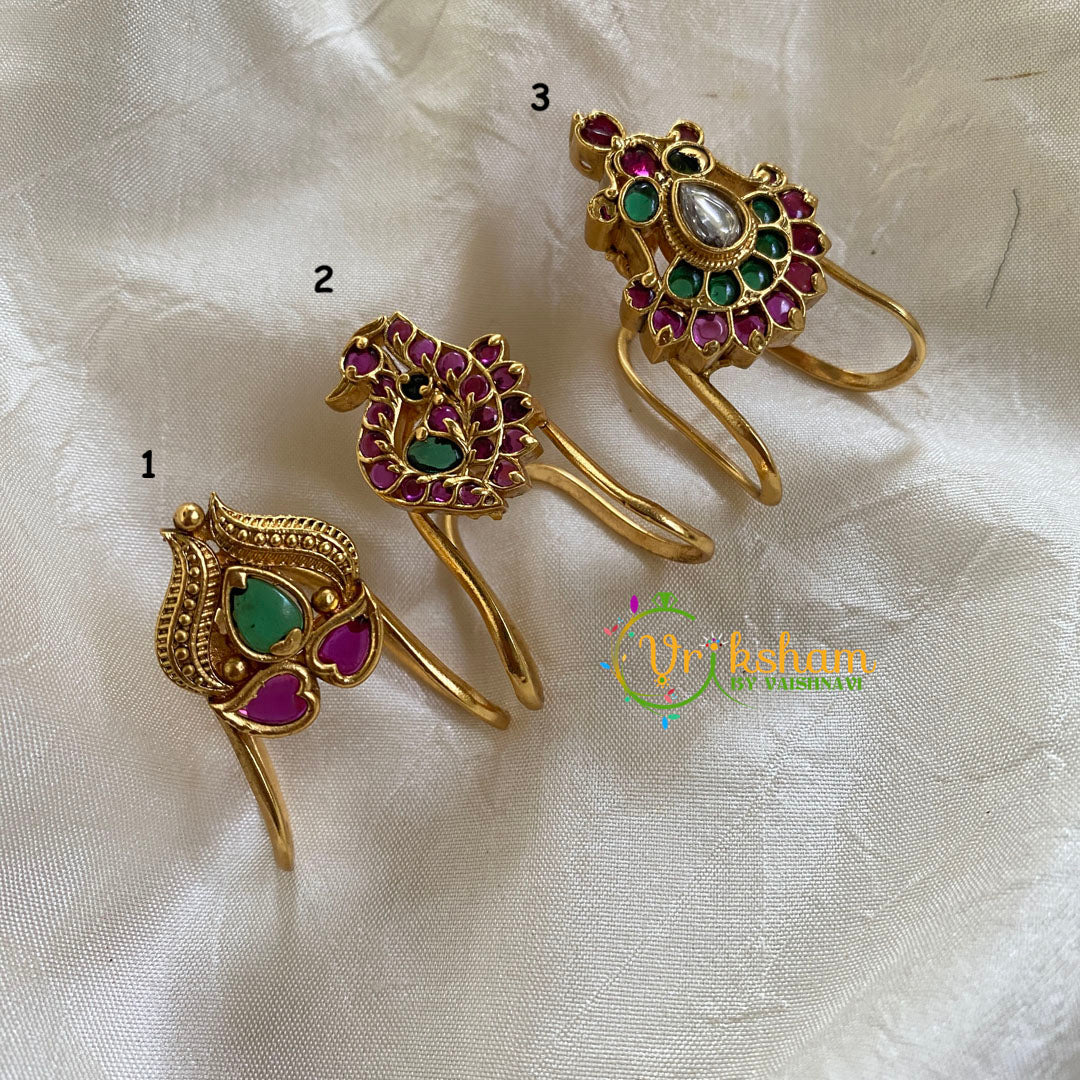 Antique Gold Look Alike Vangi Ring with Kemp imitation stones giving it a premium quality look . Please select an appropriate option from the drop down.