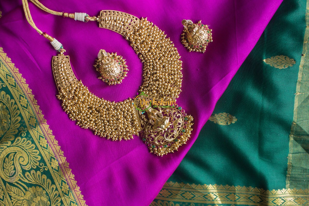 For similar neckpieces kind visit, https://vrikshamindia.com/product-category/golden-jewellery/short-neckpieces/