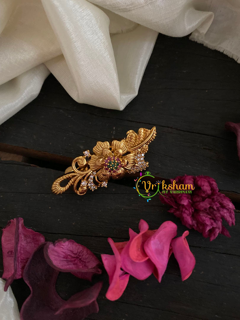 AD Stone Gold Saree Pin -Centre Floral Dress Pin– ad stone studded saree pin with Flowers with leaves pattern for festive occasion.