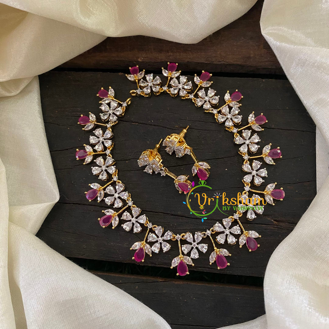 Gold Tone American Diamond Choker Short Neckpiece-Pink - NO Pendant-AD stone studded jewelry  -set of  choker and earrings