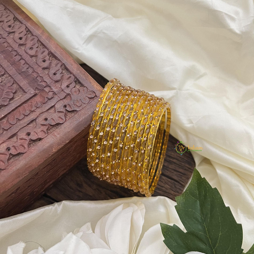 Enhance your wrists with these exquisite MD Thin Glass Bangles. This set of 12 is crafted with premium glass, offering a lightweight and elegant feel. The bangles add a touch of luxury with their thin design, perfect for any occasion. Elevate your style with this stunning collection.