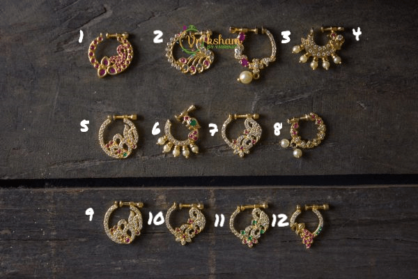 Golden Naths/Nose ring for Non - Pierced Nose. People who do not have piercing do not have to worry about not being able to wear naths. These nose rings helps people with non pierced nose also wear the same with a screw like holding. The moment you see the nath you will be able to understand how it will sit on the nose.