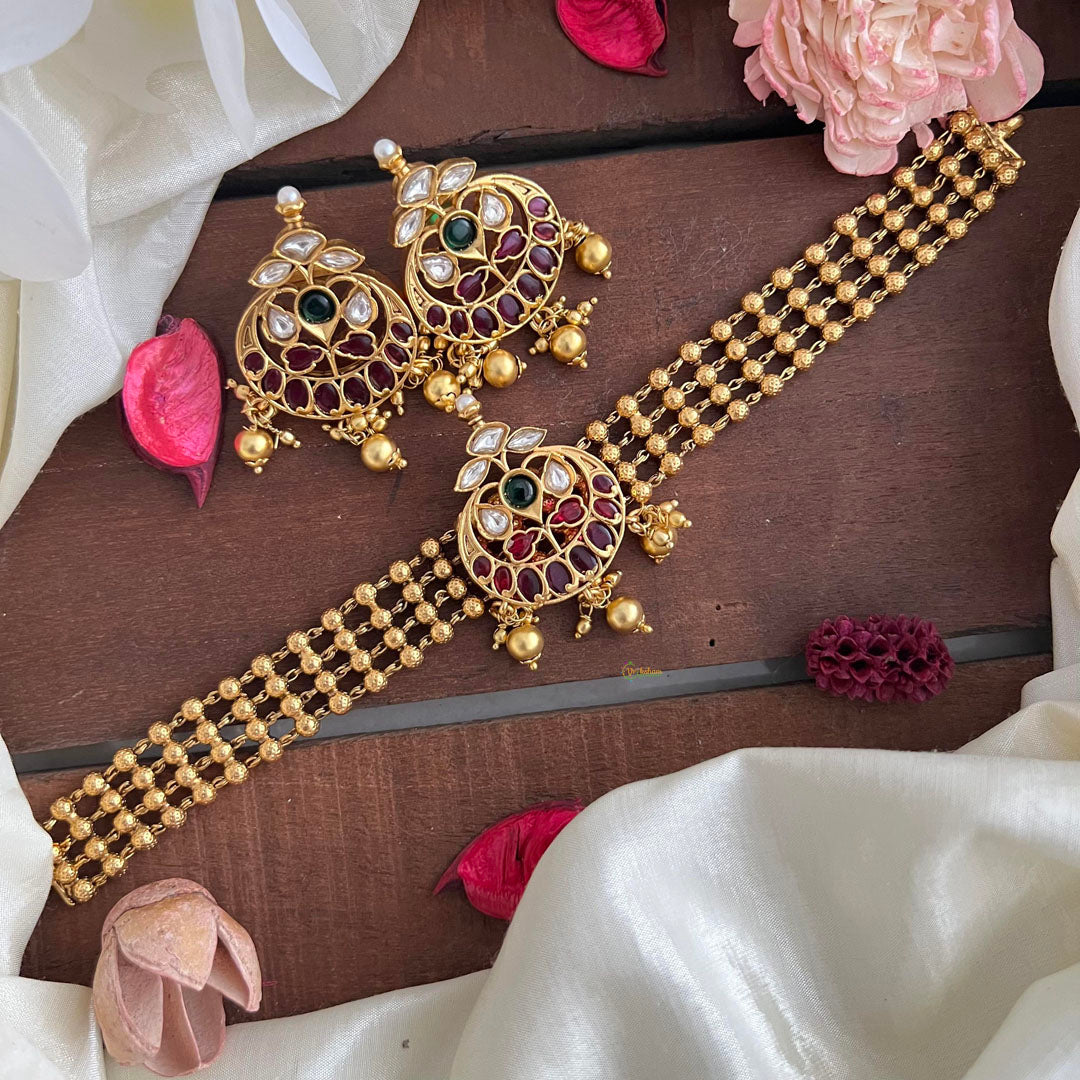 MAKE MATERIAL - This Choker is made of Copper and brass with imitation golden or white pearls and stones.