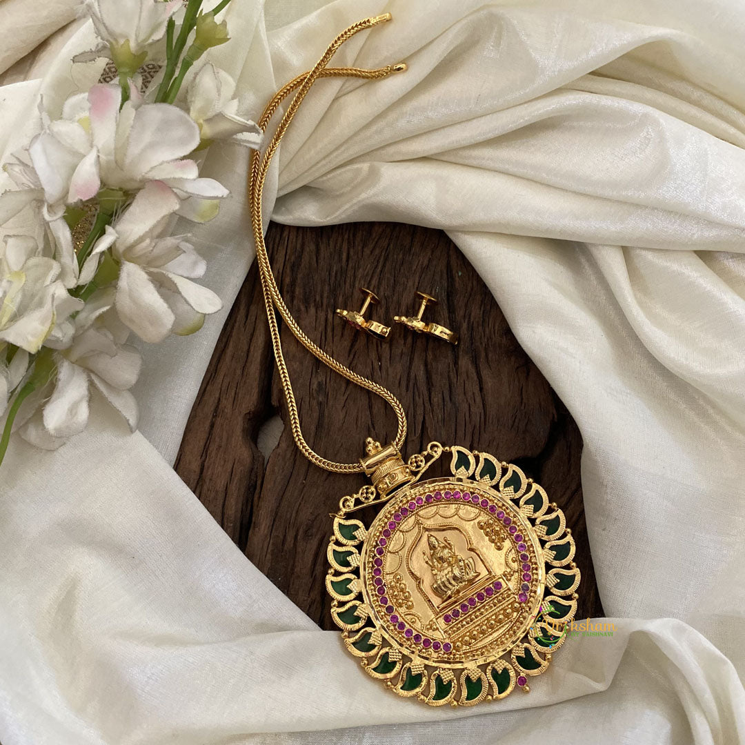 Green AD Stone Traditional Kerala Style Lakshmi Pendant Neckpiece -Traditional Kerala Temple jewelry- design Palakka pendant; comes with matching studs.
