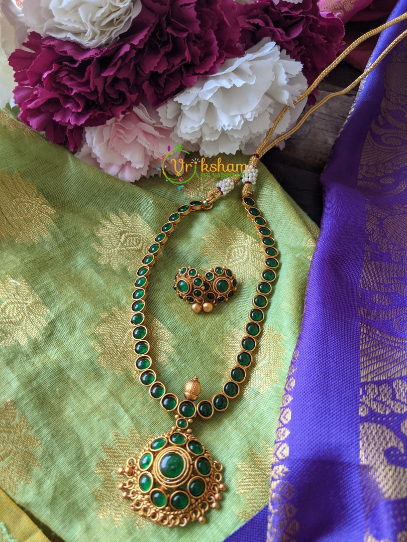 Green Gold alike Addigai - artificial green stone studded addigai with pendant and matching ear studs.