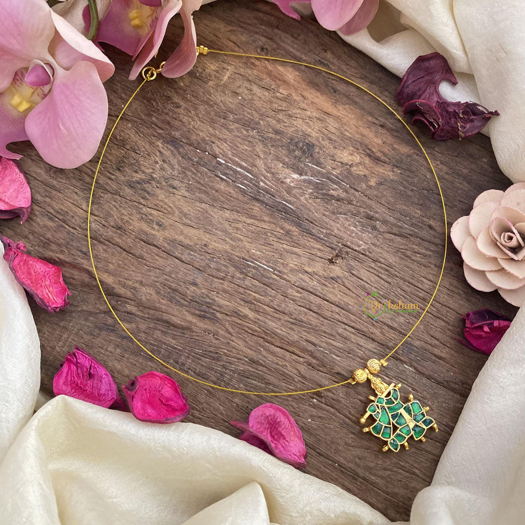 Green Jadu Kundan Krishna Pendant Invisible Neckpiece-G15568