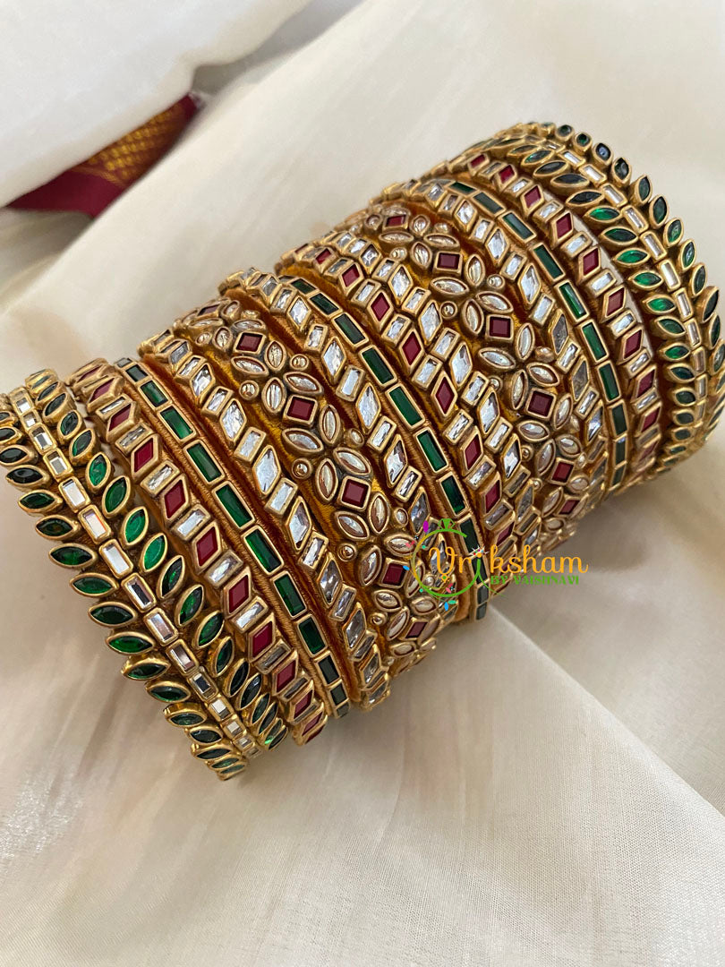 Green Maroon Silk Thread Kundan Bridal Bangle– Silk Thread Bangles- kundan stone festive bangles , Comes as a set only.