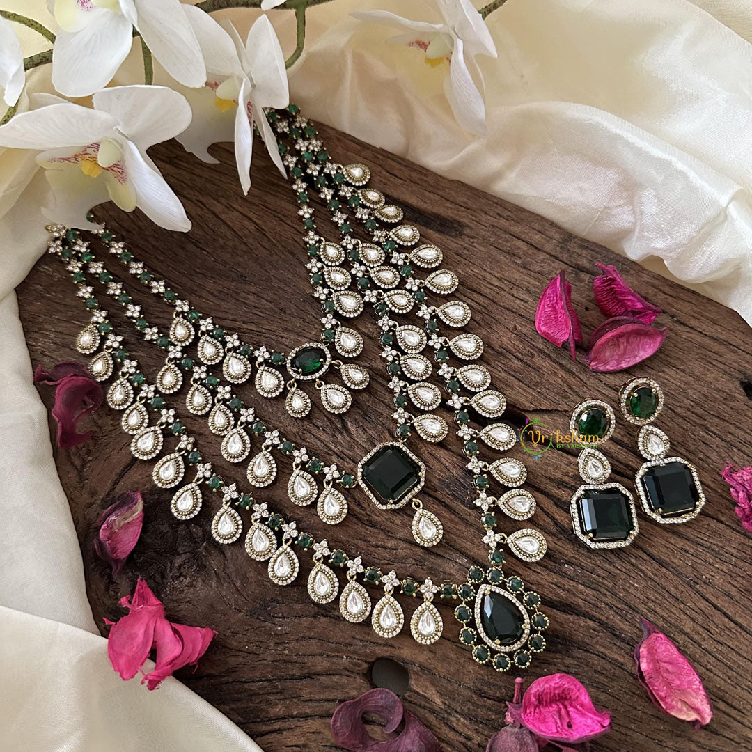 Green Victorian Diamond 3 Layered Neckpiece-VV1824