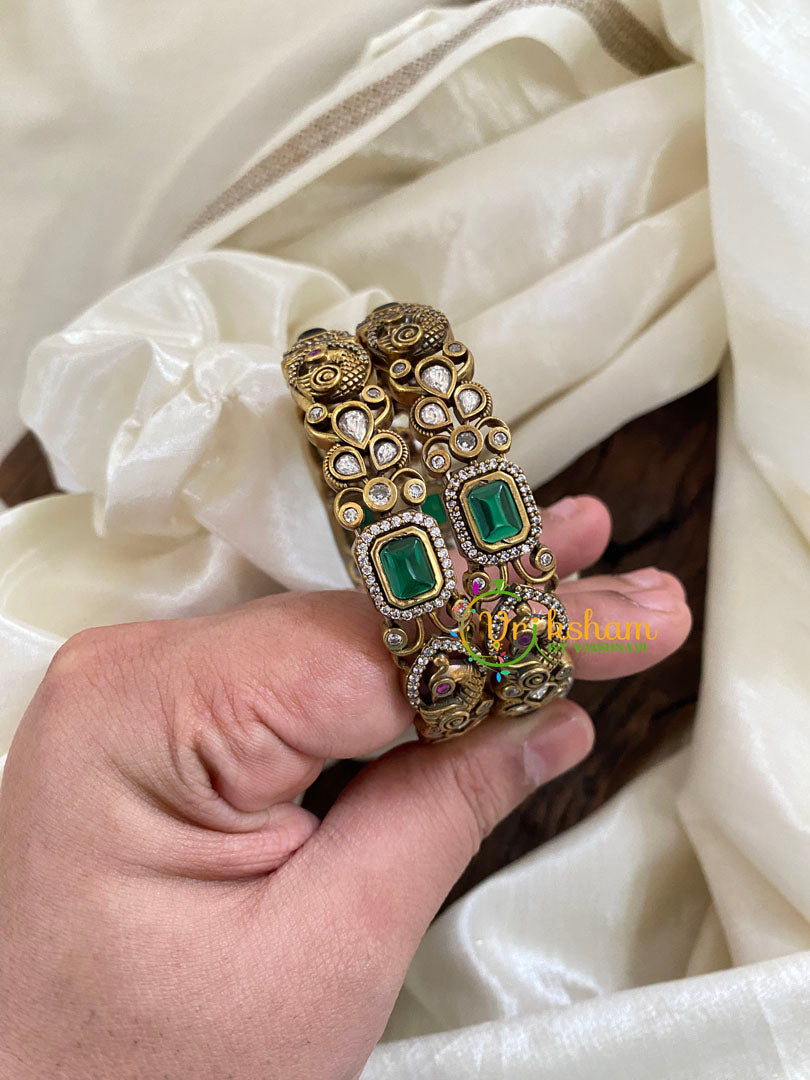 Green Victorian Diamond Bridal Bangles - semi precious stone studded ; royal statement jewelry.