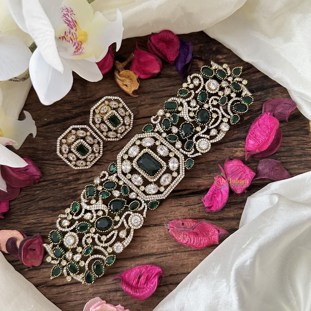 Indulge in luxury with our Green Victorian Diamond High Neck Choker. This exquisite piece features a striking green hue and is adorned with sparkling diamonds. The high neck design adds an air of sophistication and elegance to any outfit, making it a must-have for the fashionable and refined. Elevate your look and exude exclusivity with our choker.