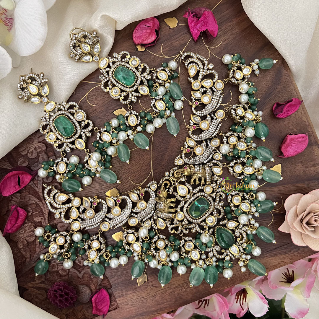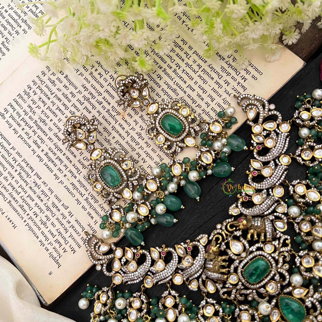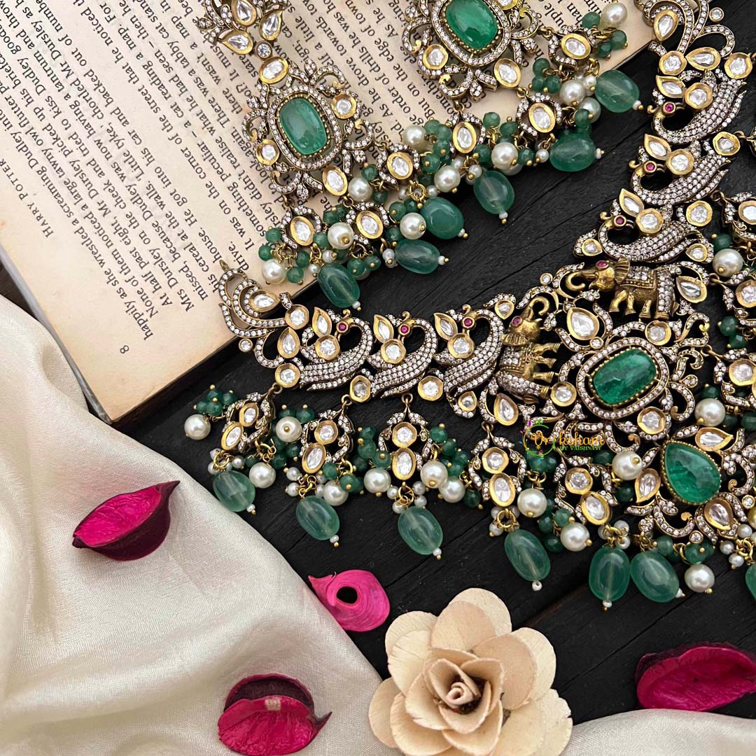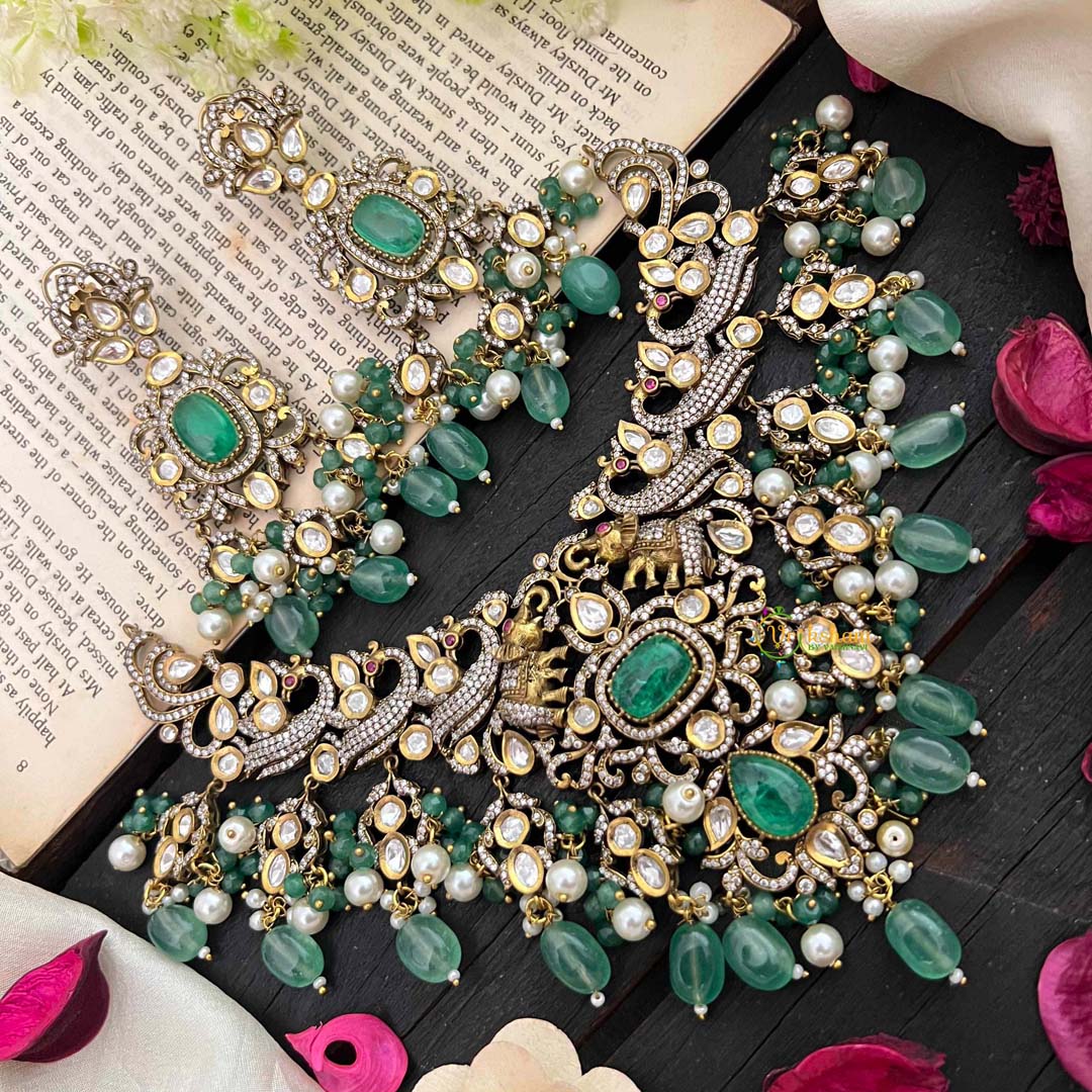 Victorian Diamond High Neck Choker - precious stone studded NO BEAD royal jewelry; comes with matching earrings.