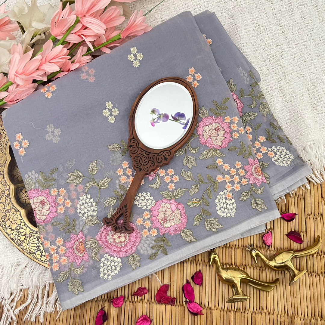 Experience luxury and sophistication with our Grey Sita Ramam Floral Embroider Cotton Saree-Handloom. Made with intricate handloom techniques, this saree features beautiful floral embroidery that adds an elegant touch to any occasion. Made from high-quality cotton, it offers comfort and style, making it a must-have for any fashion enthusiast.