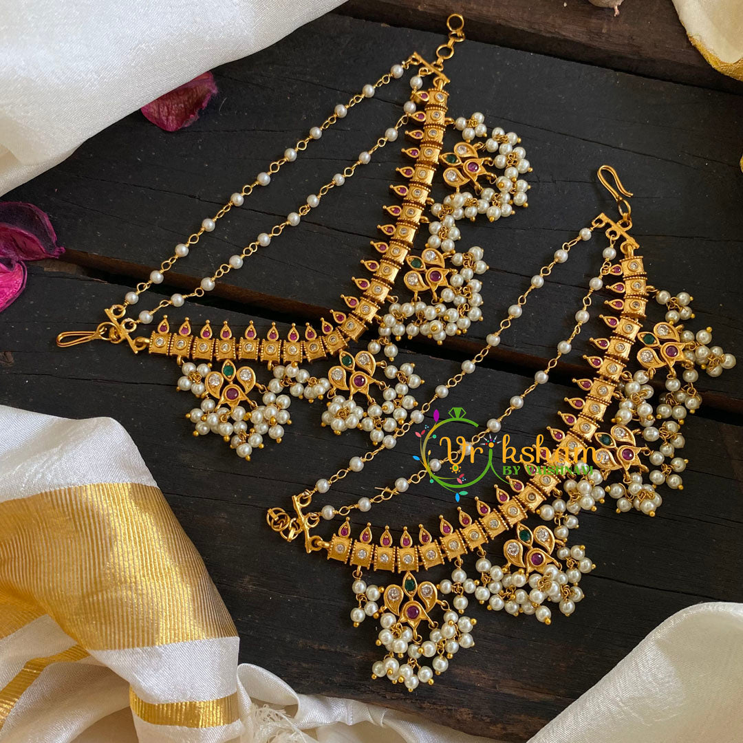 Guttapusalu Ear chain -Guttapusalu maatil -3 layered red stone studded guttapusalu hanging ear maatal.
