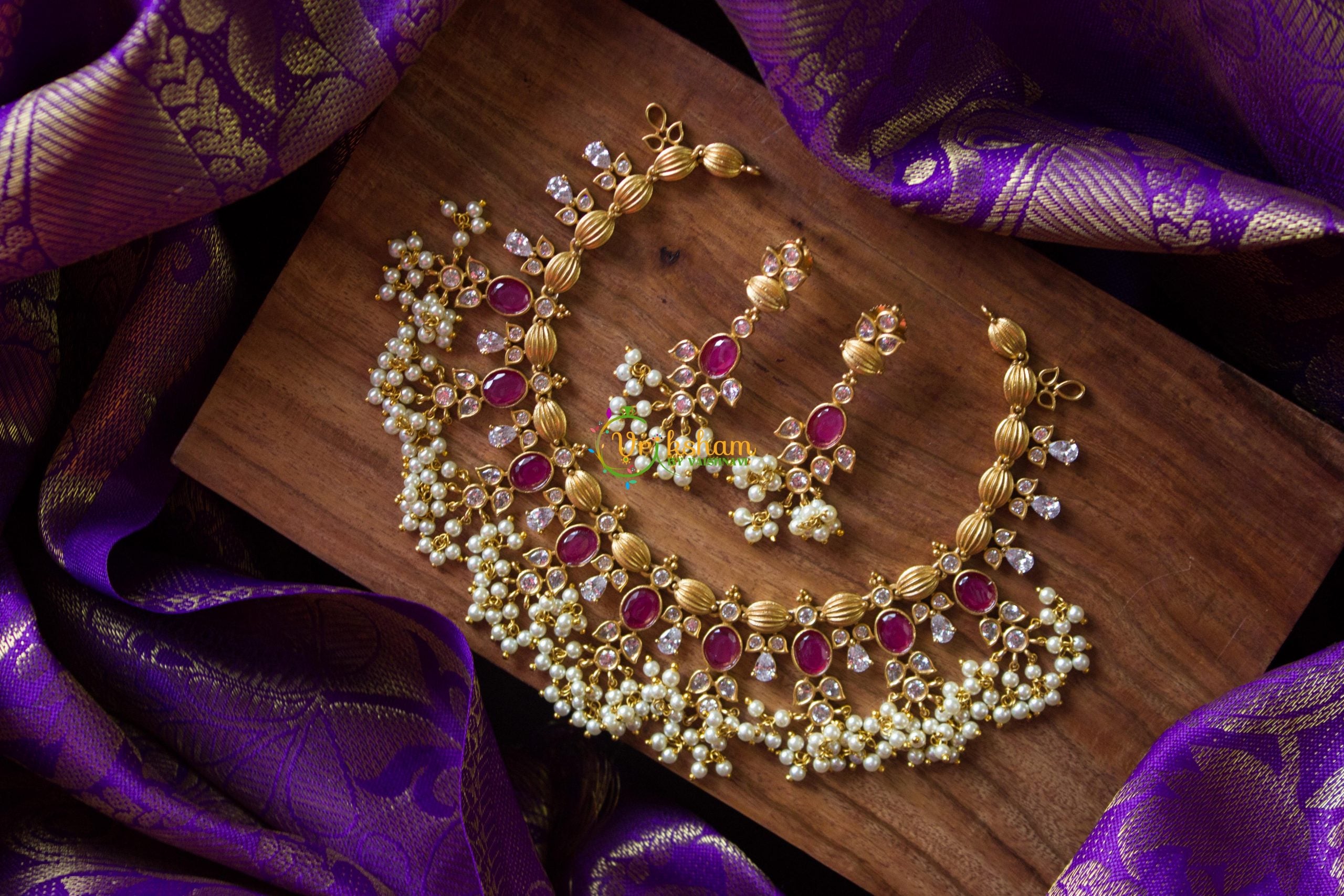 A traditional south Indian Jewelry with a modern design to it, which has a very generous amount of Pearls that is designe for anu occasion for a women.