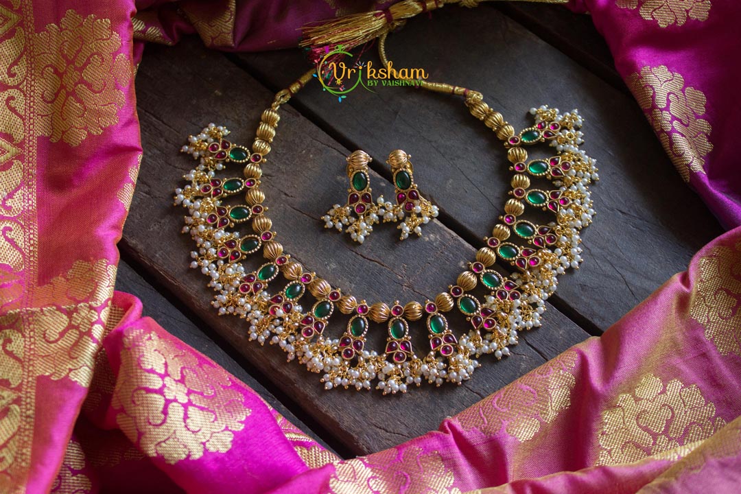This is a beautiful Guttapuslu pearl style choker with Red Green stones is purely handmade and was created in a measure to support artisans directly.