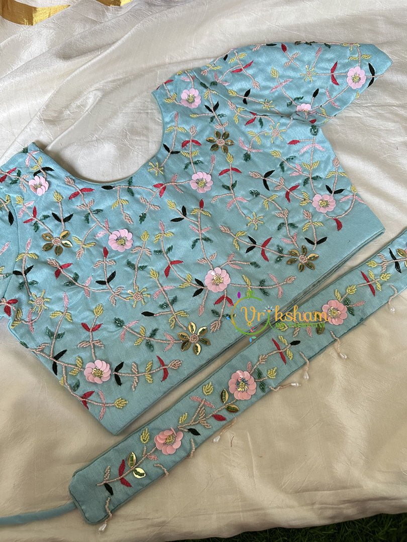 Premium Hand Embroidered Readymade Blouse-Sky Blue-VS603