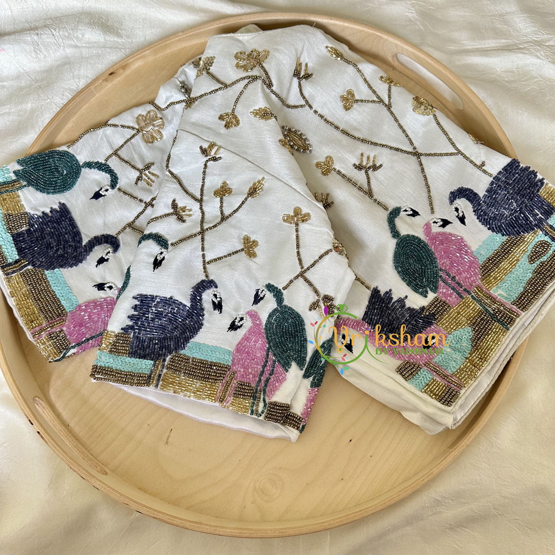 Premium Hand Embroidered Readymade Blouse -Ready made hand crafted crane on river pattern blouse; both casual and party wear blouse.; hand embroidered with Bead Sequin Zardosi and Zari Thread work
