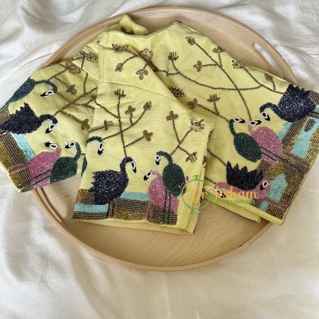 Premium Hand Embroidered Readymade Blouse -Ready made hand crafted crane on river pattern blouse; both casual and party wear blouse.; hand embroidered with Bead Sequin Zardosi and Zari Thread work