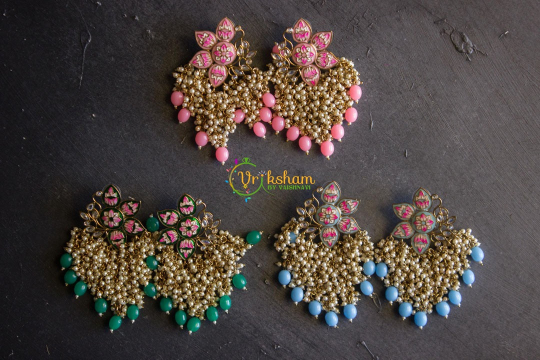 Hand-Painted Pearl Hanging Designer Earrings.