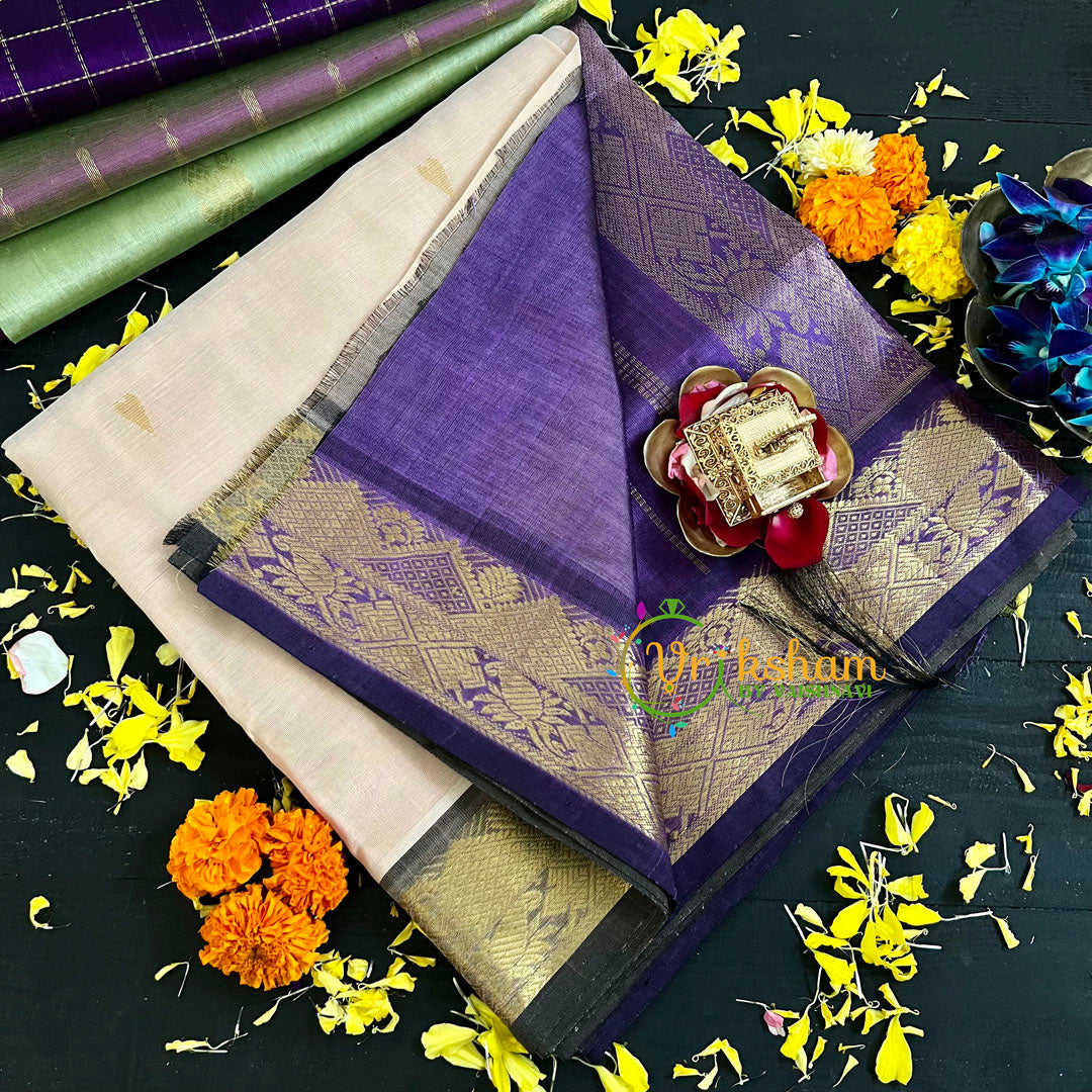 Half White with Blue Handloom Silk Cotton Saree- Festive wear saree – Pattern throughout the saree; comes with Blouse attached. Two side contrast border and pallu.