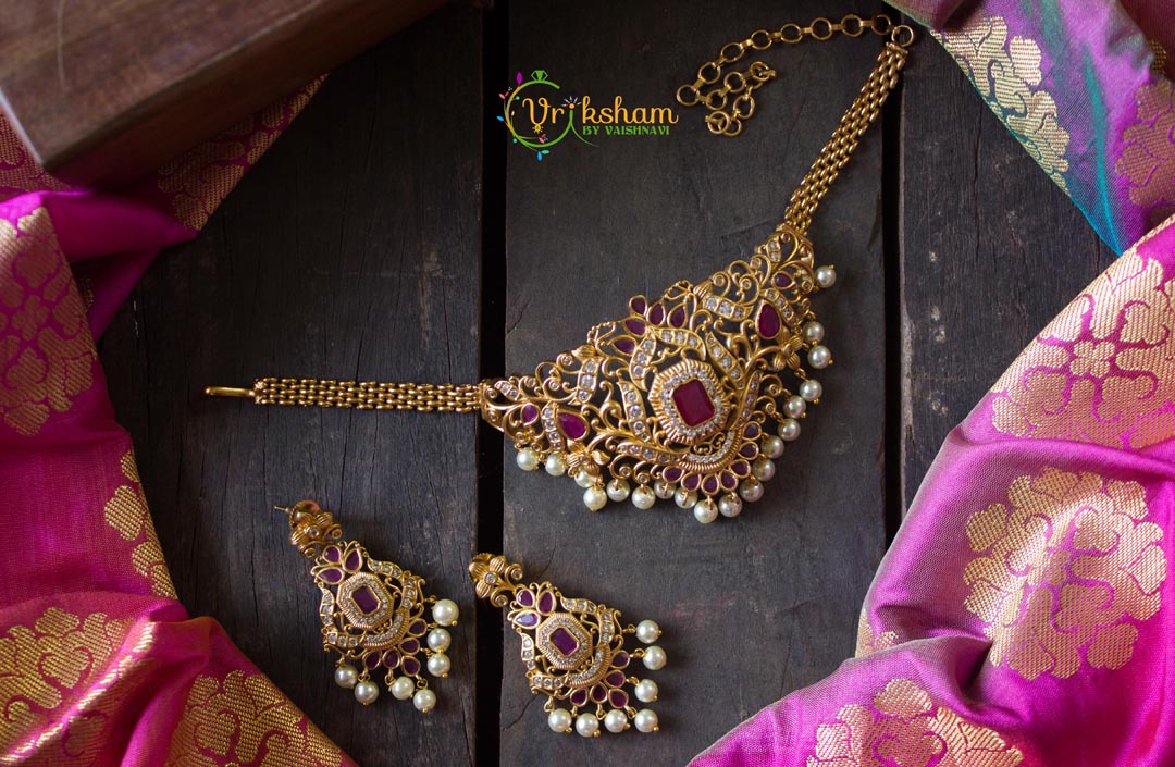 High Neck Choker with Big Red Stones and Lookalike Diamonds