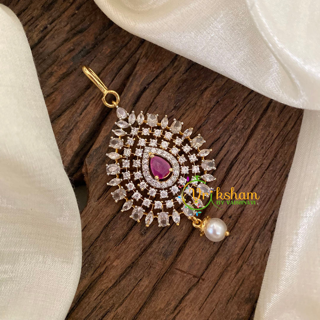 Hook Type AD Stone Short Maang Tikka -Red -These are center tikkas which modern brides recently have been preferring more along with their wedding jewelery.