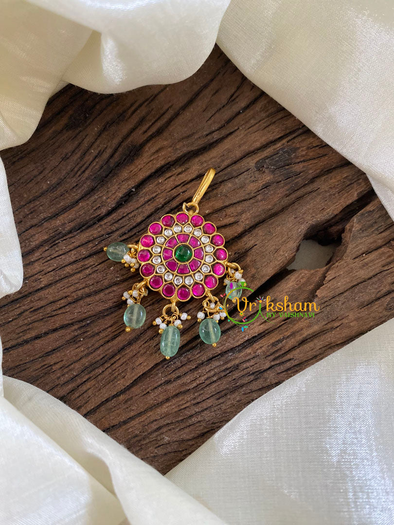 Pink White Green Short Hook Type Jadau Kundan Maang Tikka -Chakra--Pastel Green Bead-j1218