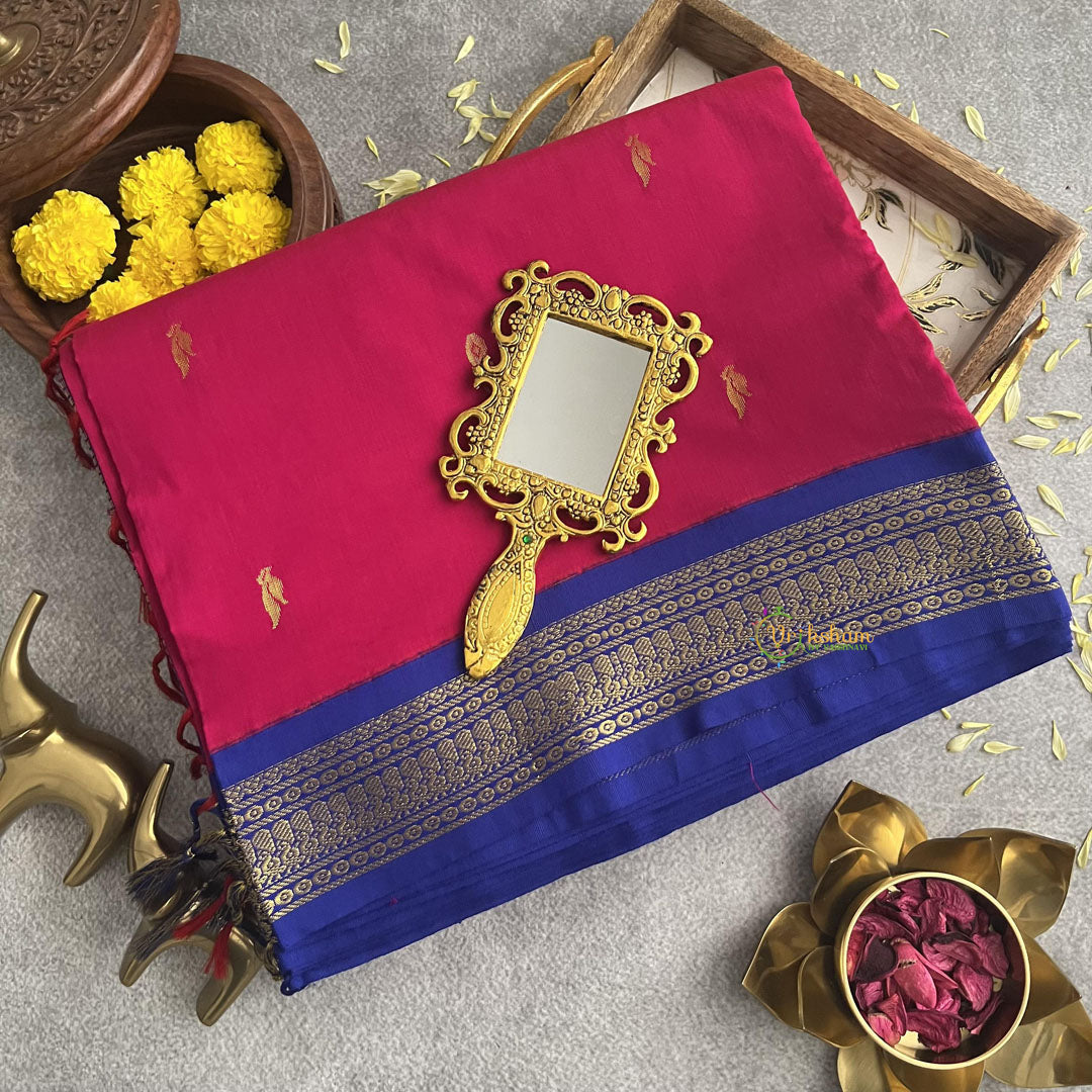 Unleash your elegance with our Hot Pink With Purple Border - Kalyani Cotton Saree! Made from high-quality kalyani cotton, it features a beautiful contrast border that will make you stand out. The zari work on the border and delicate tassels attached to the pallu add a touch of sophistication. Elevate your saree game now!