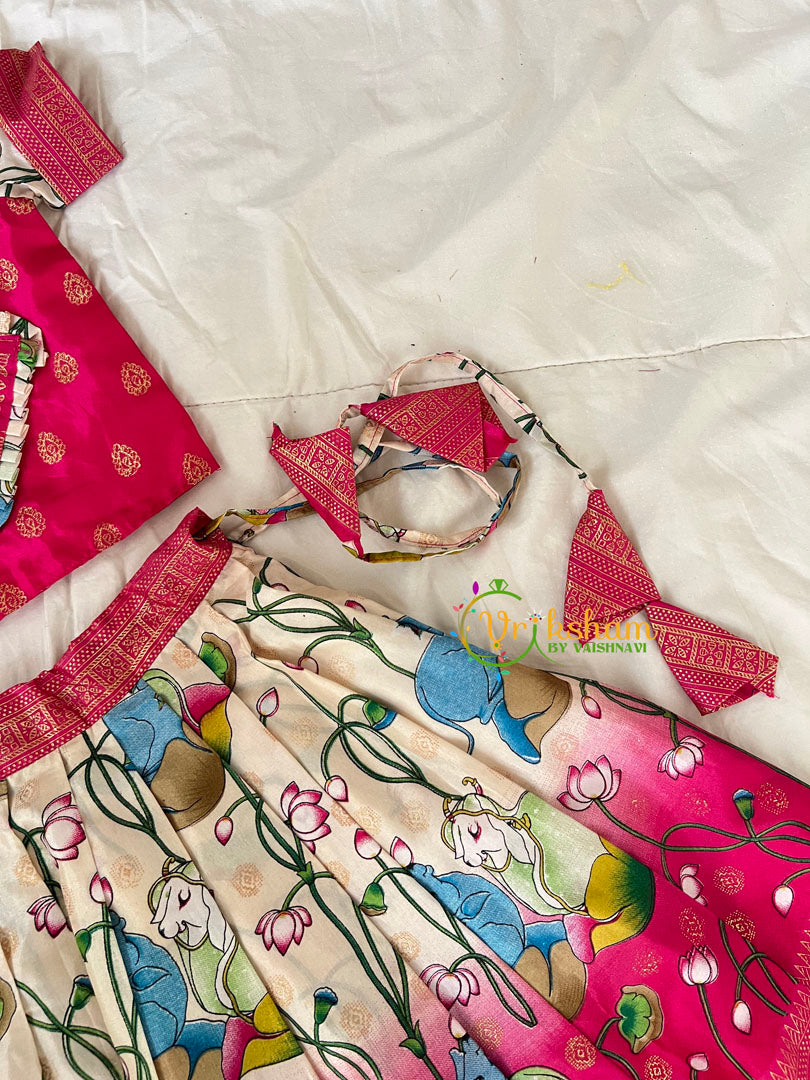 Color :  Pink Pichwai print Indian Traditional Girls Lehenga.