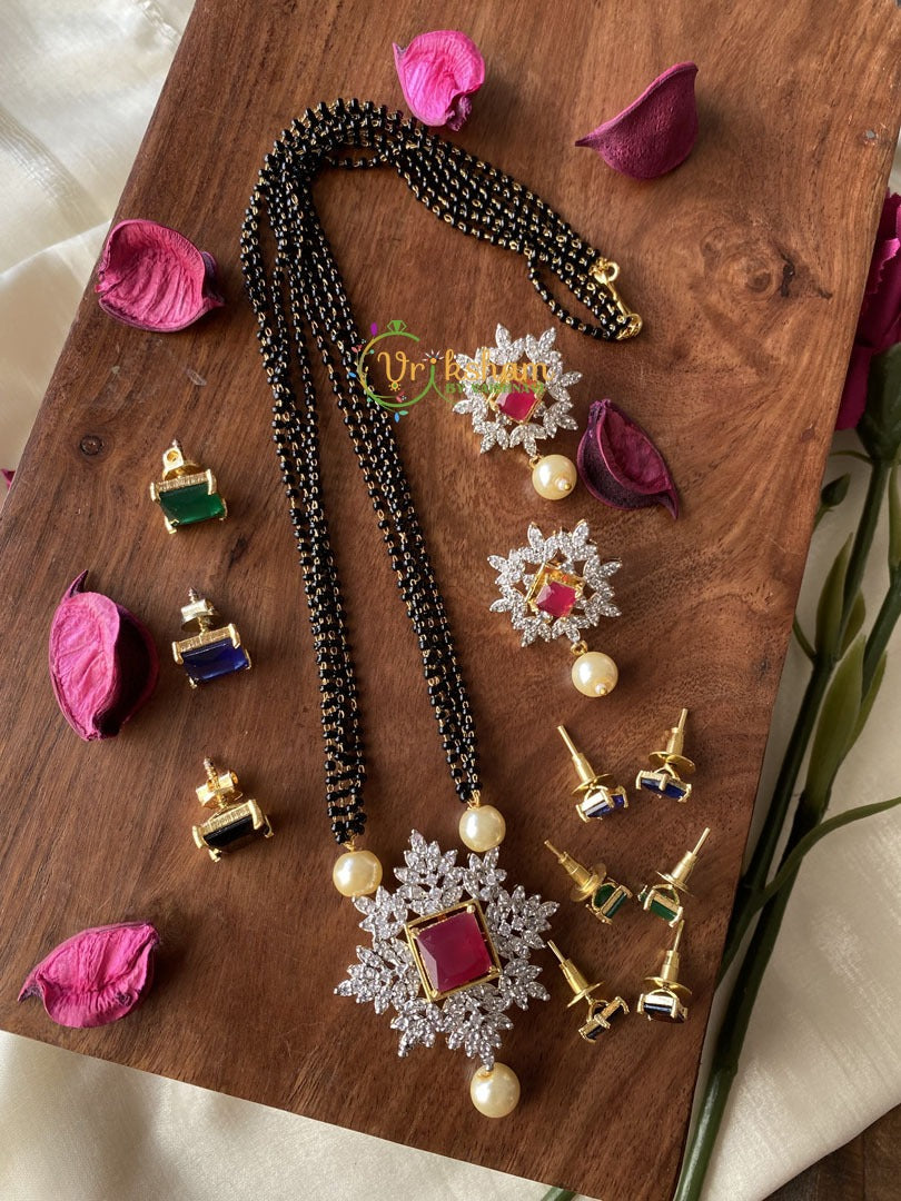 Interchangeable AD Stone Mangalsutra Pendant Chain -Mangalsutra Style Pendant and Chain Neckpiece – 5 white ad stone with pearl finish, Gold Look alike polish. Comes with similar earrings.