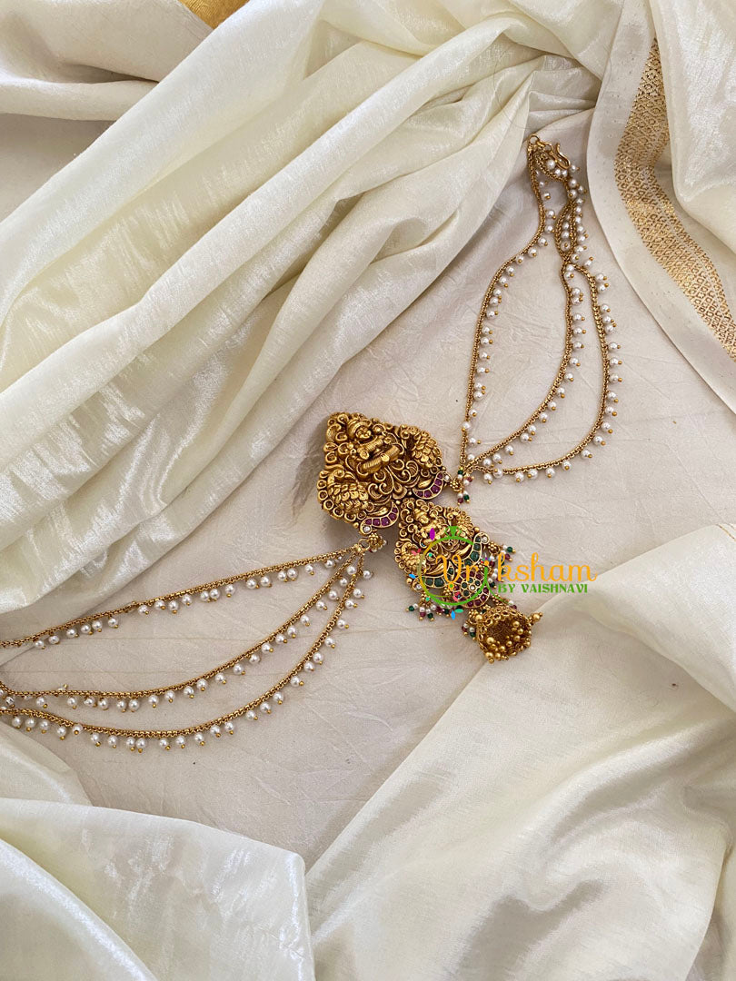 Premium Jada Bun Billai with Maatil -Bridal Bun Jada Billai – Bridal Hair Accessory-  imitation AD stone set single piece hanging billai. Pearl maatil.